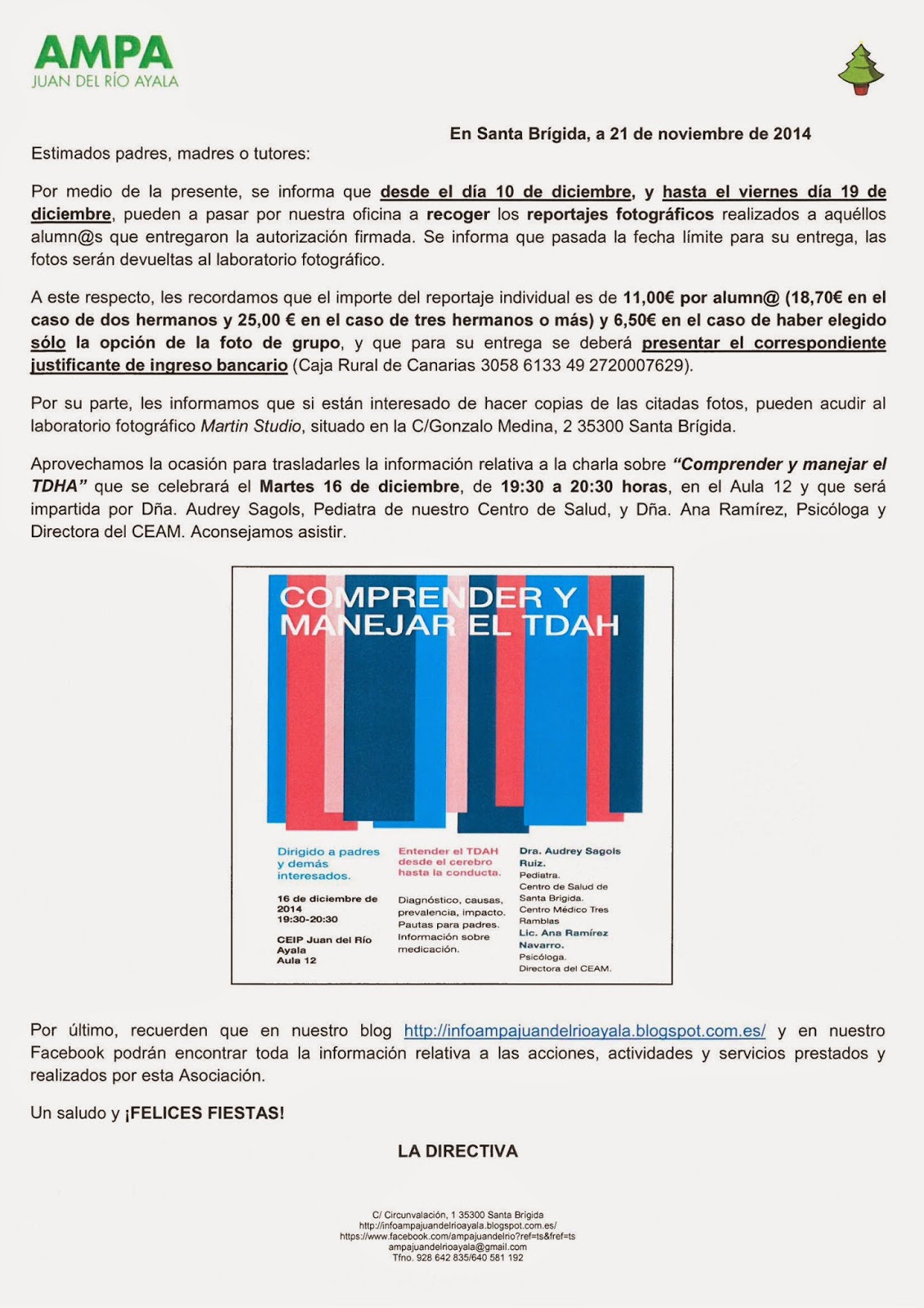COMUNICADO RECOGIDA REPORTAJES FOTOGRÁFICOS Y RECORDATORIO CHARLA TDAH Comparte esto: Compartir en X (Se abre en una ventana nueva) X Comparte en Facebook (Se abre en una ventana nueva) Facebook Me gusta Cargando... Relacionado Deja un comentario Cancelar la respuesta Δ