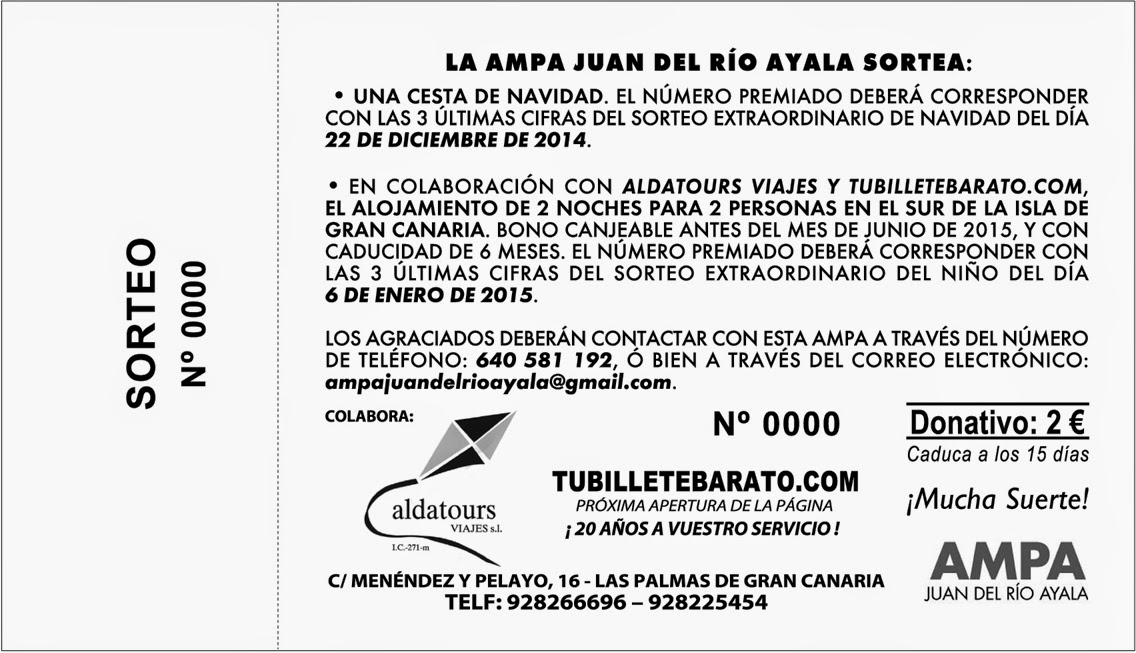 VENTA DE NÚMEROS PARA LA RIFA DE NAVIDAD – EN NUESTRA OFICINA O MIEMBROS AMPA Comparte esto: Compartir en X (Se abre en una ventana nueva) X Comparte en Facebook (Se abre en una ventana nueva) Facebook Me gusta Cargando... Relacionado Deja un comentario Cancelar la respuesta Δ