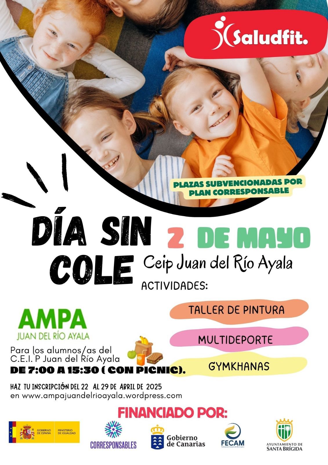 La AMPA Juan del Río Ayala para facilitar la conciliación familiar invertirá esta subvención en varios proyectos. El primero fue el Campus de Navidad, el segundo son los días sin cole de carnaval, luego el campus de semana santa y ahora el día sin cole del 2 de mayo,imprescindible para que muchas familias puedan conciliar, de la mano de Saludfit, les ofrecemos 36 plazas subvencionadas, es decir, totalmente gratuitas. Si no hay más de 36 inscripciones, todas serán gratuitas. Si hay más de 36, se tendría que baremar, y esta labor la va a realizar la Concejalía de asuntos sociales del Ayuntamiento de Santa Brígida, para saber quiénes acceden a esas plazas gratuitas.