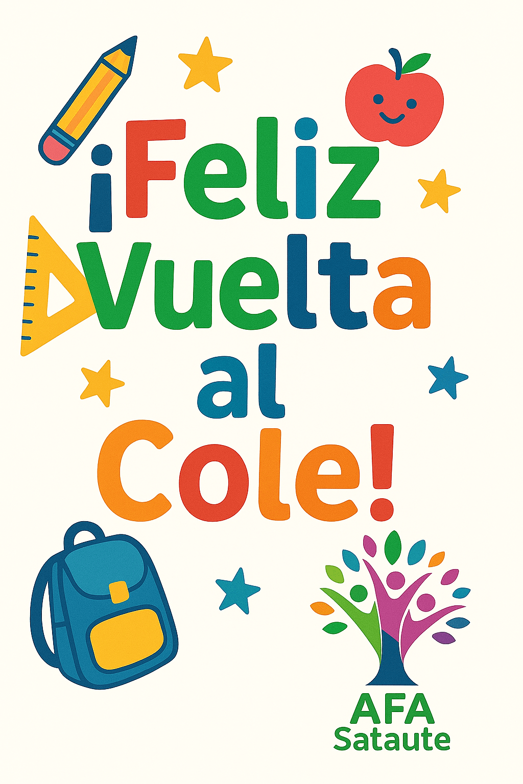 Quedan muy pocos días para la vuelta al cole, desde la AFA Sataute esperamos que hayan tenido unas felices vacaciones, y aprovechamos la ocasión para darles la bienvenida a este nuevo curso escolar 2025-2026.