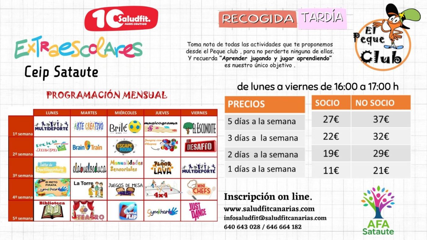 El Peque Club es mucho más que una acogida tardía tradicional, en el Peque Club se lo pasen genial aprendiendo, tienen el programa de actividades el la parte superior.