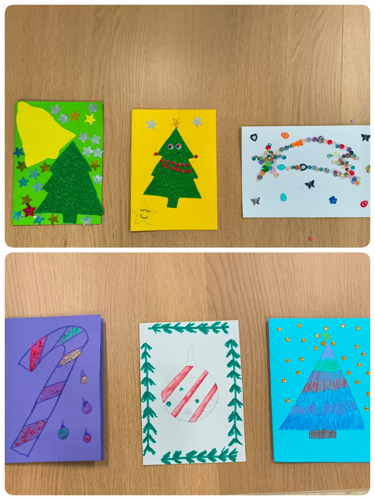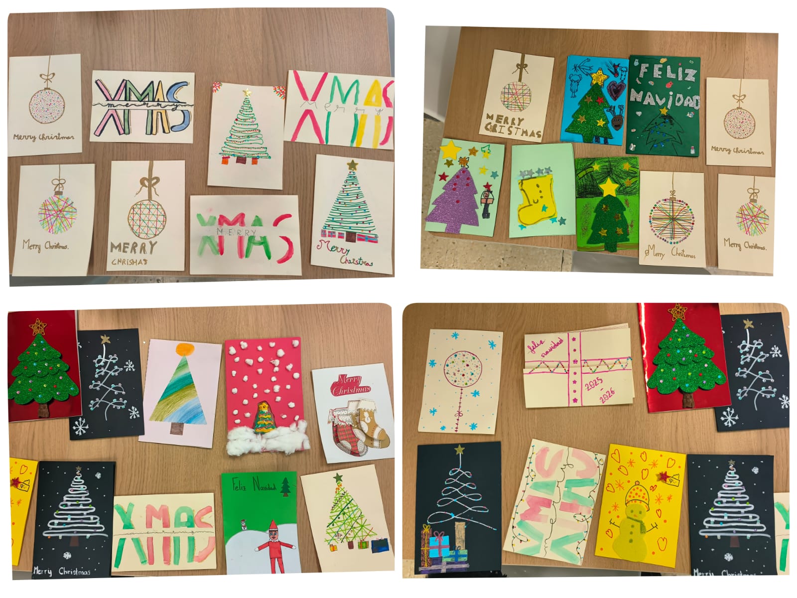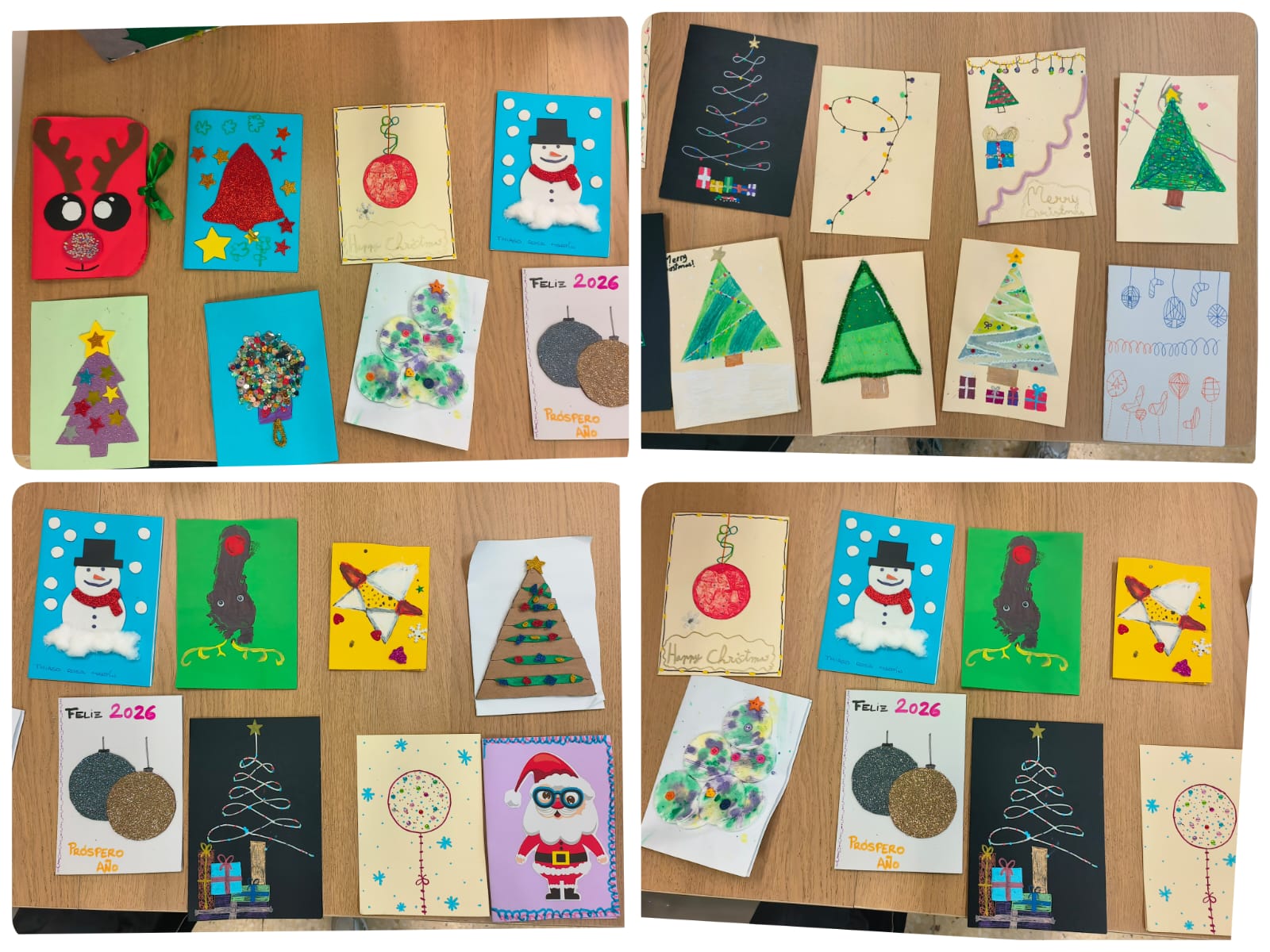 Las tarjetas que nos entregaron desde el Club de Mayores y el Centro Ocupacional están expuestas en la zona de Secretaría de nuestro colegio. Les animamos a que, si tienen la oportunidad, pasen a verlas, ya que son realmente preciosas y están llenas de cariño y creatividad.
