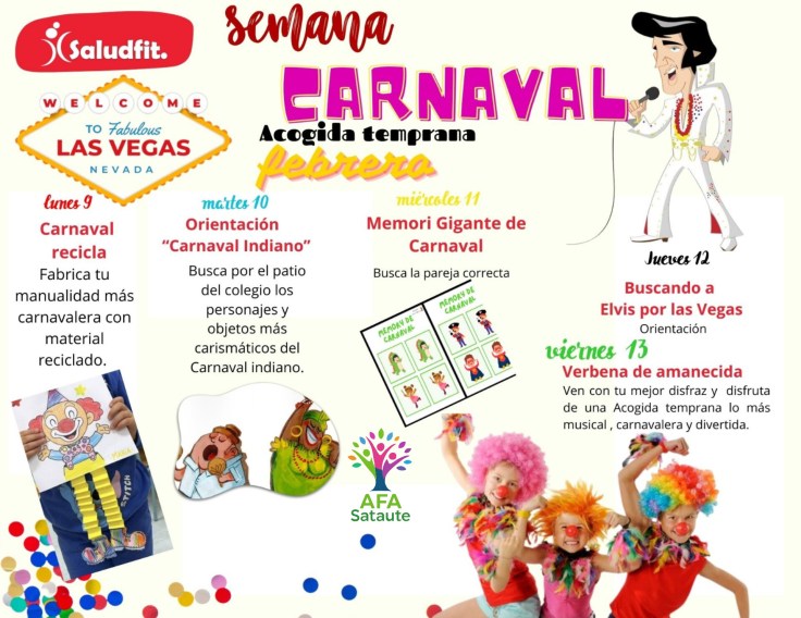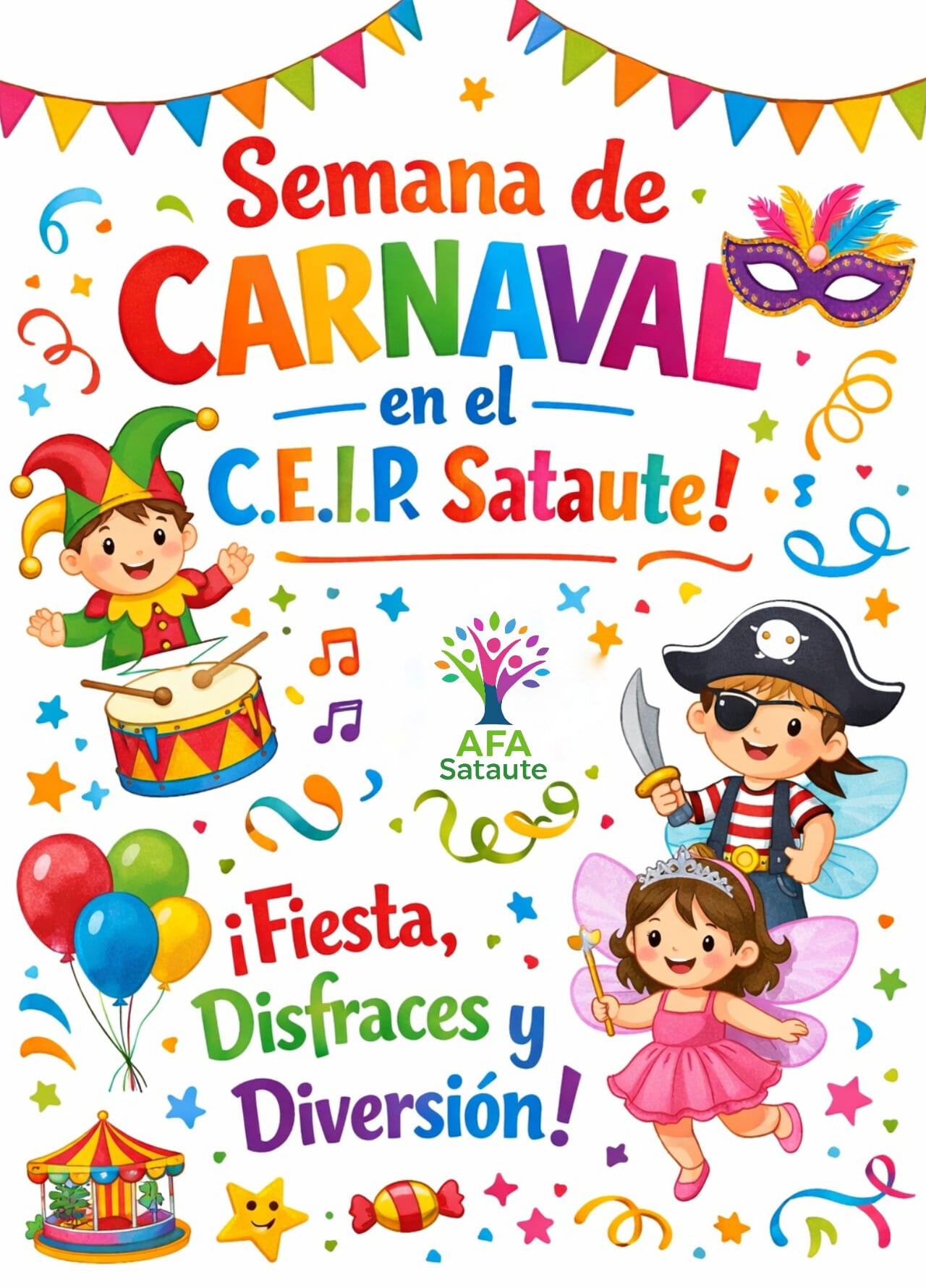 - Jueves 12 de febrero: disfraz libre. Les recordamos que los disfraces no deben ocultar el rostro ni incluir elementos que puedan resultar peligrosos.