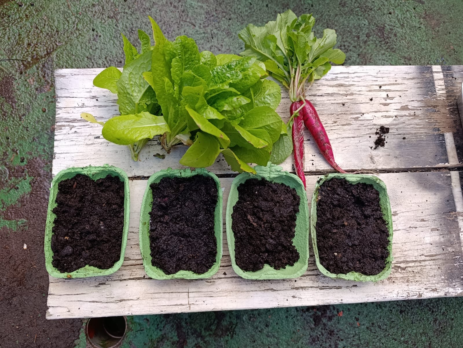 Durante la sesión, se cosecharon rábanos y lechugas, y se trasplantaron diversos cultivos tras el abonado previo de la tierra. Además, recordamos el funcionamiento de la lombricompostera, observamos su estado y alimentamos a nuestras lombrices.