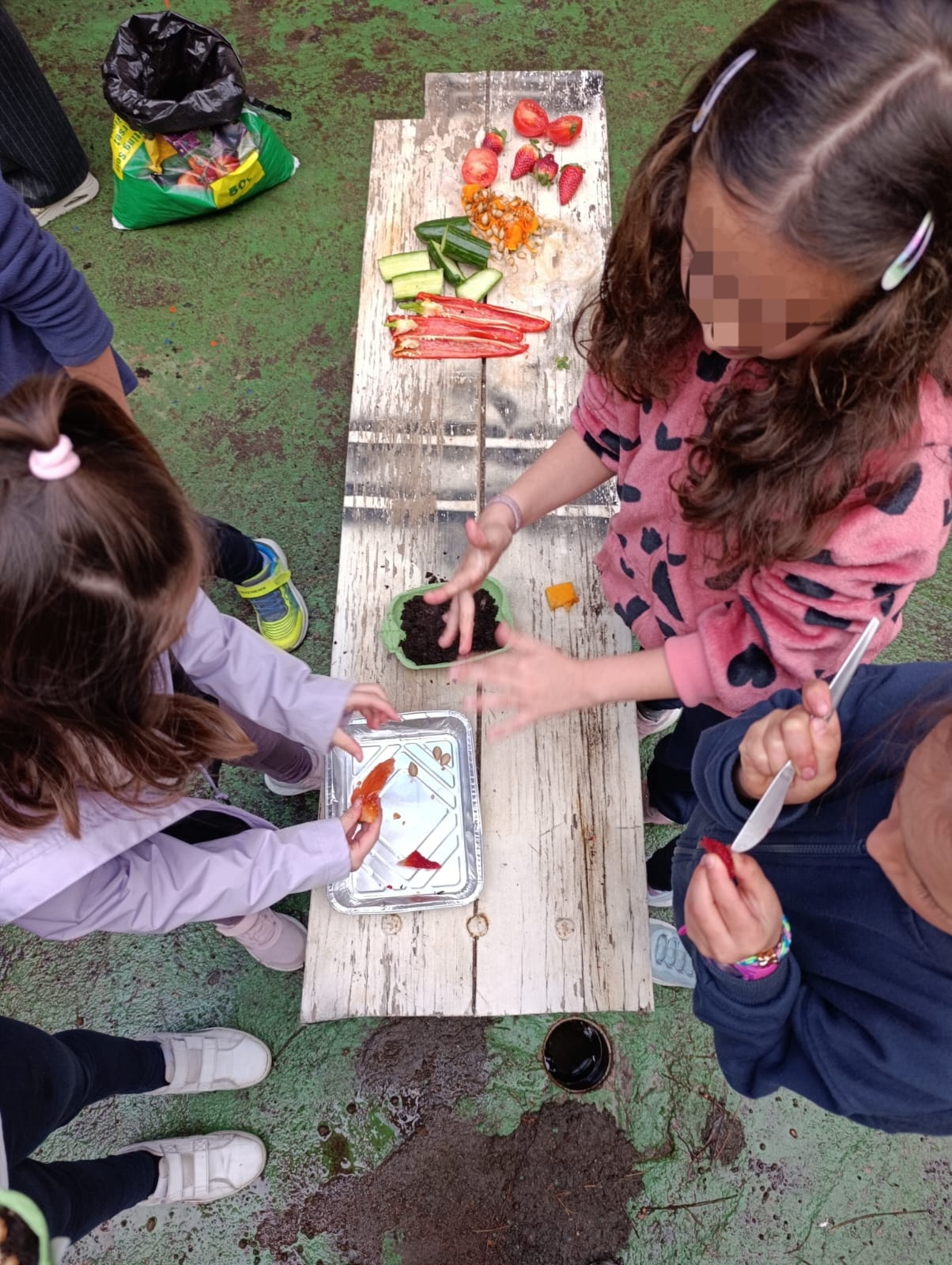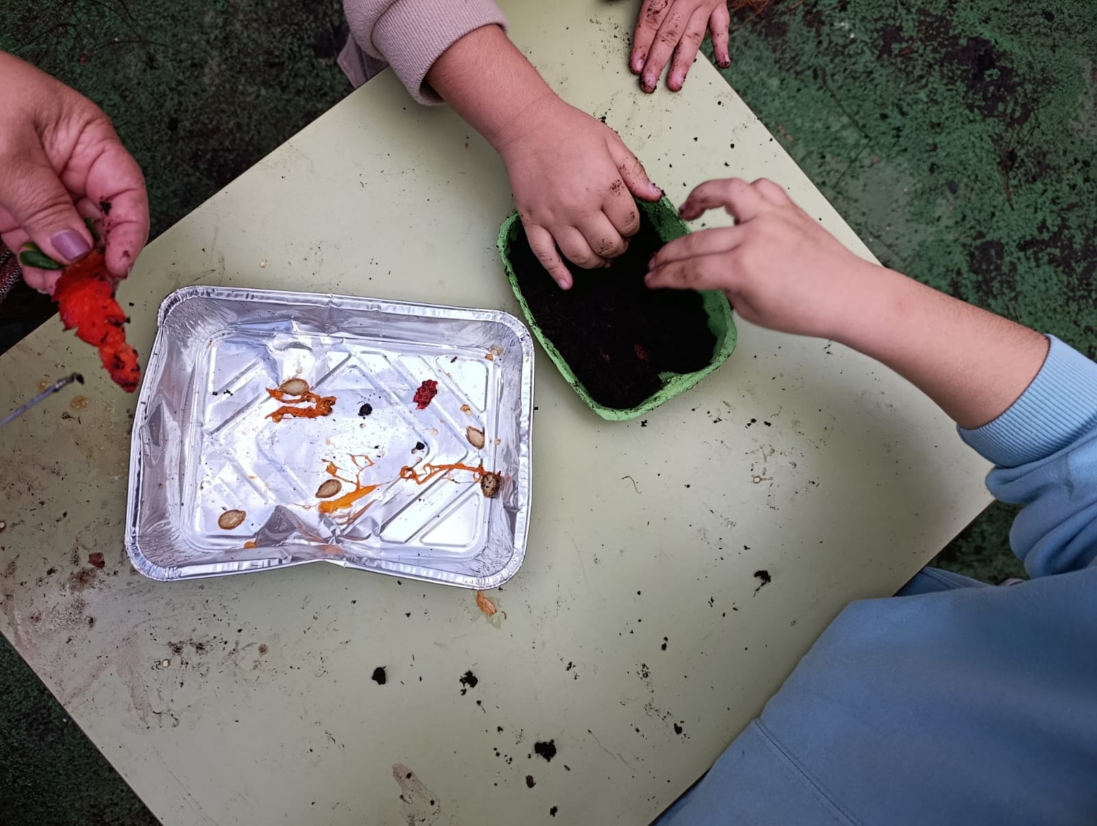 Asimismo, el alumnado preparó en equipo un semillero que podrán llevarse a casa, utilizando cartones de huevos y extrayendo semillas de distintos frutos, como pepino, calabaza, fresa, tomate y pimiento.