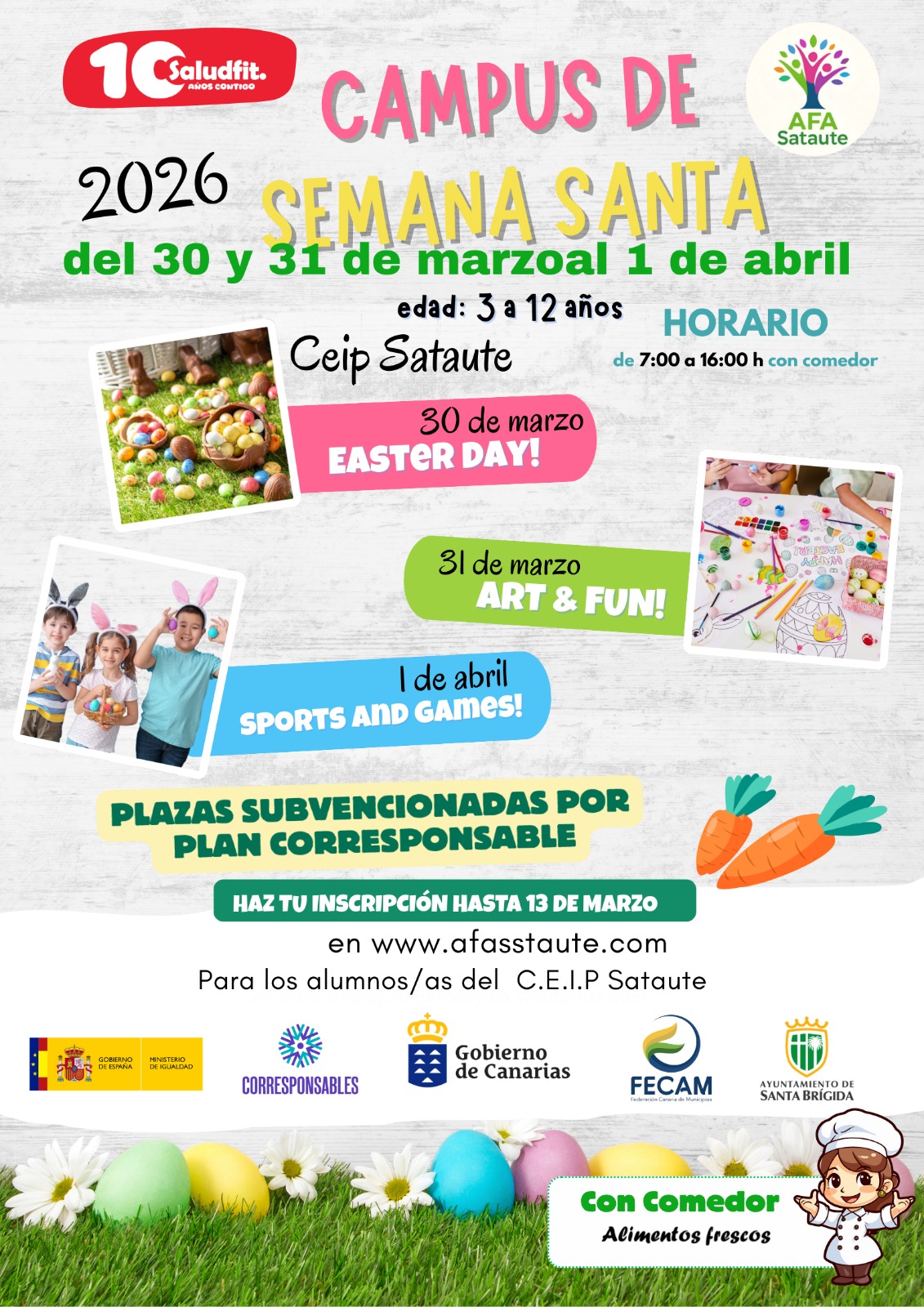 Les recordamos que está abierto el plazo de inscripción para el Campus de Semana Santa, que contará con plazas subvencionadas a través del Plan Corresponsables. El periodo para realizar la inscripción será hasta el viernes 13 de marzo.