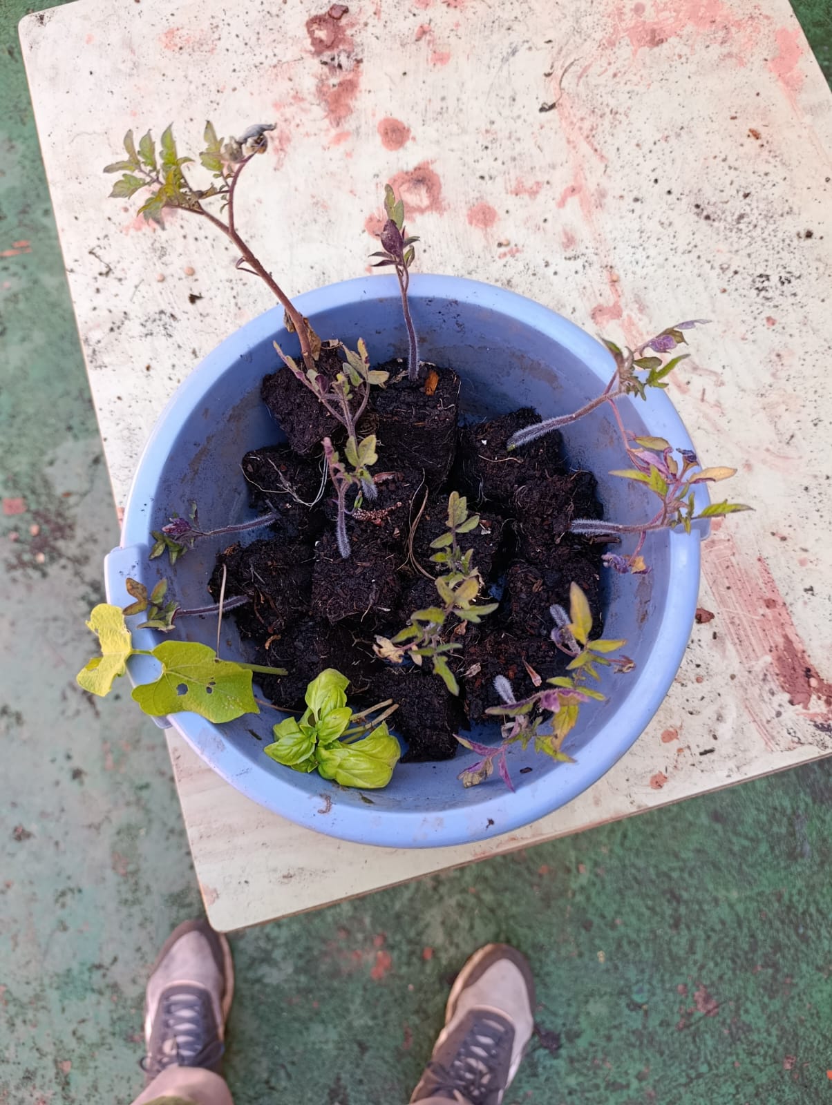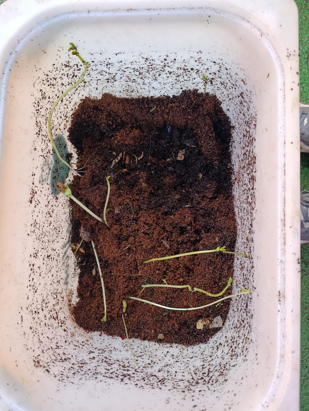 - Se observa cómo hasta las pieles de papa germina en la vermicompostera, sin embargo las plantas crecen elongadas y deformes por la falta de sol, se puede comprobar comparando con las plantas de papa sanas.