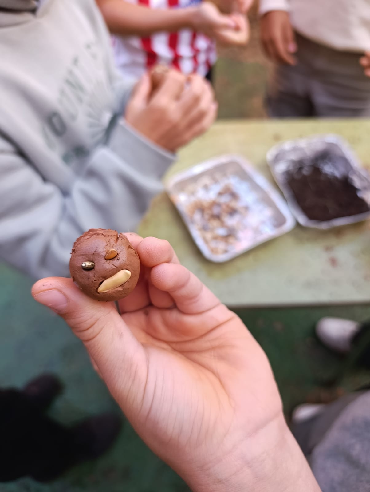 - El alumnado es invitado a elaborar sus bombas de semillas en un trabajo individual creativo de reflexión por la paz. Cada cual se lleva varias bombas que pueden «explotar» donde quieran, incluyendo espacios públicos como experimento de intervención pacífica.