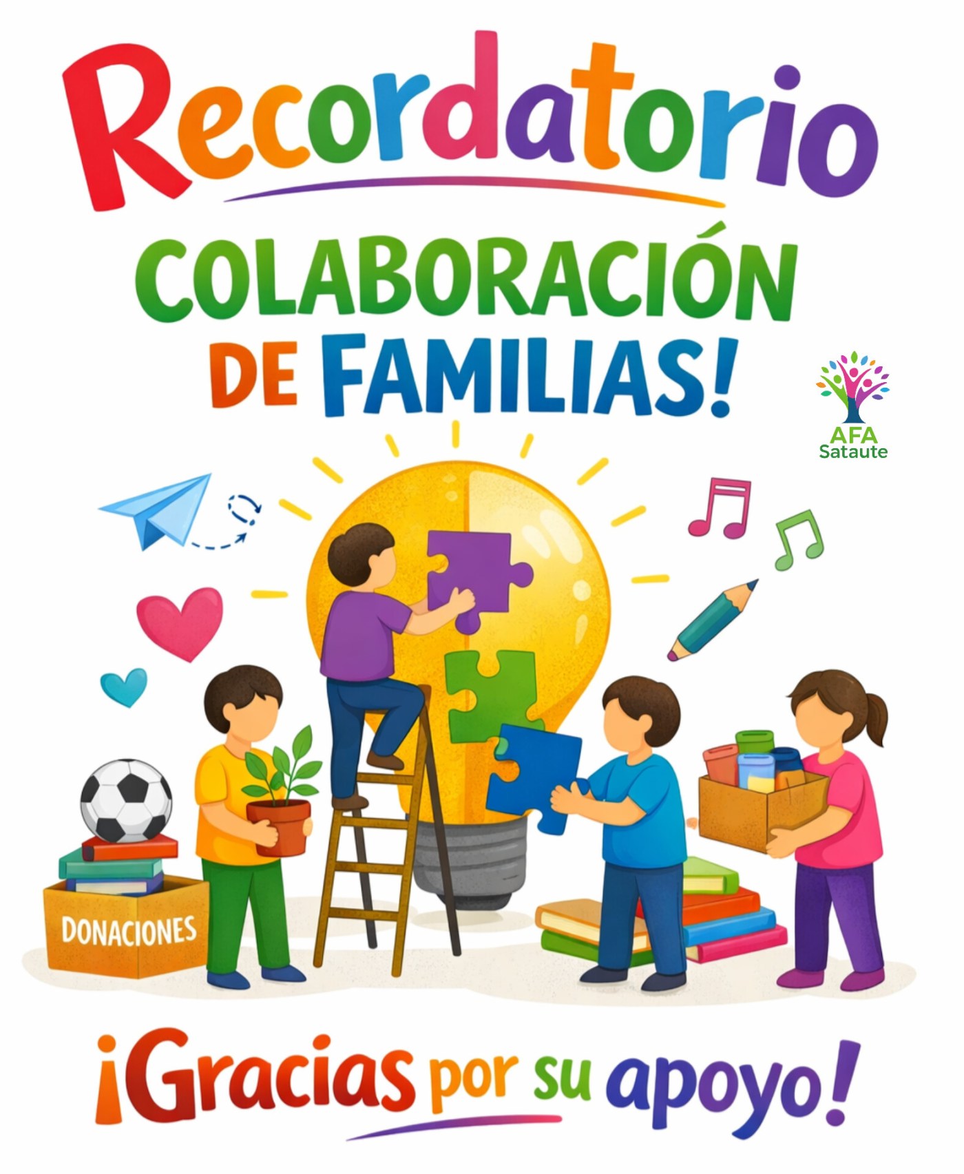 Les recordamos que desde nuestro cole se está solicitando la colaboración de las familias para varias cosas como son: