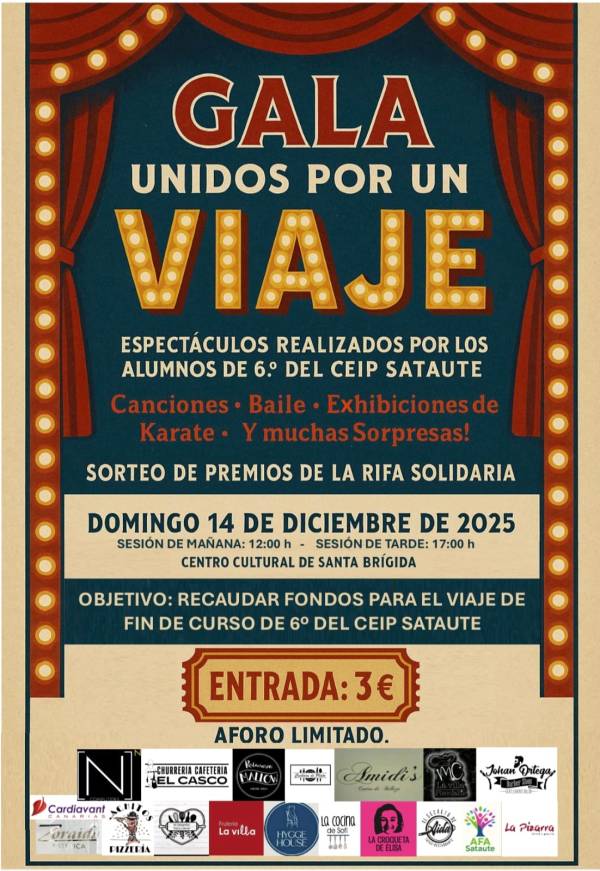 Estimadas familias: Les recordamos que el próximo domingo 14 de diciembre se celebrará una preciosa Gala solidaria, organizada con mucho esfuerzo y dedicación por el alumnado de sexto curso y sus familias. La recaudación obtenida en este evento irá destinada íntegramente a financiar el viaje de fin de curso de nuestros estudiantes de sexto, un... Leer más →