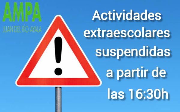 Suspendidas actividades extraescolares a partir de las 16.30h 03/04/25